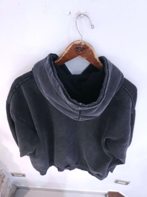 De diseño original y con personalidad. Cada buzo es único gracias a un proceso artesanal de lavado y desgaste que le aporta carácter y exclusividad. Por este proceso, es posible que la prenda presente pequeñas variaciones en su medidas respecto a la guía de talles o pequeñas manchitas blancas propias del lavado.